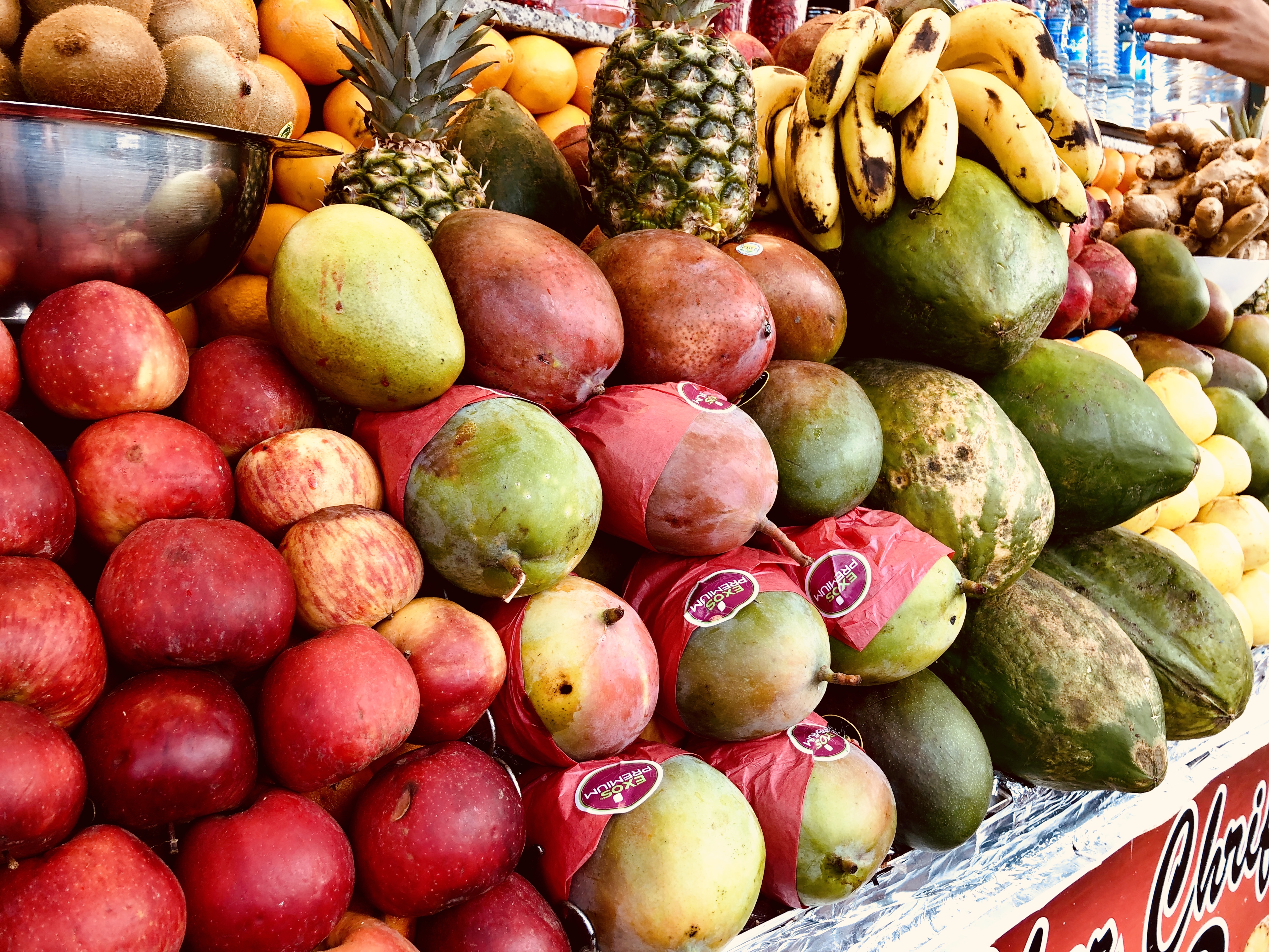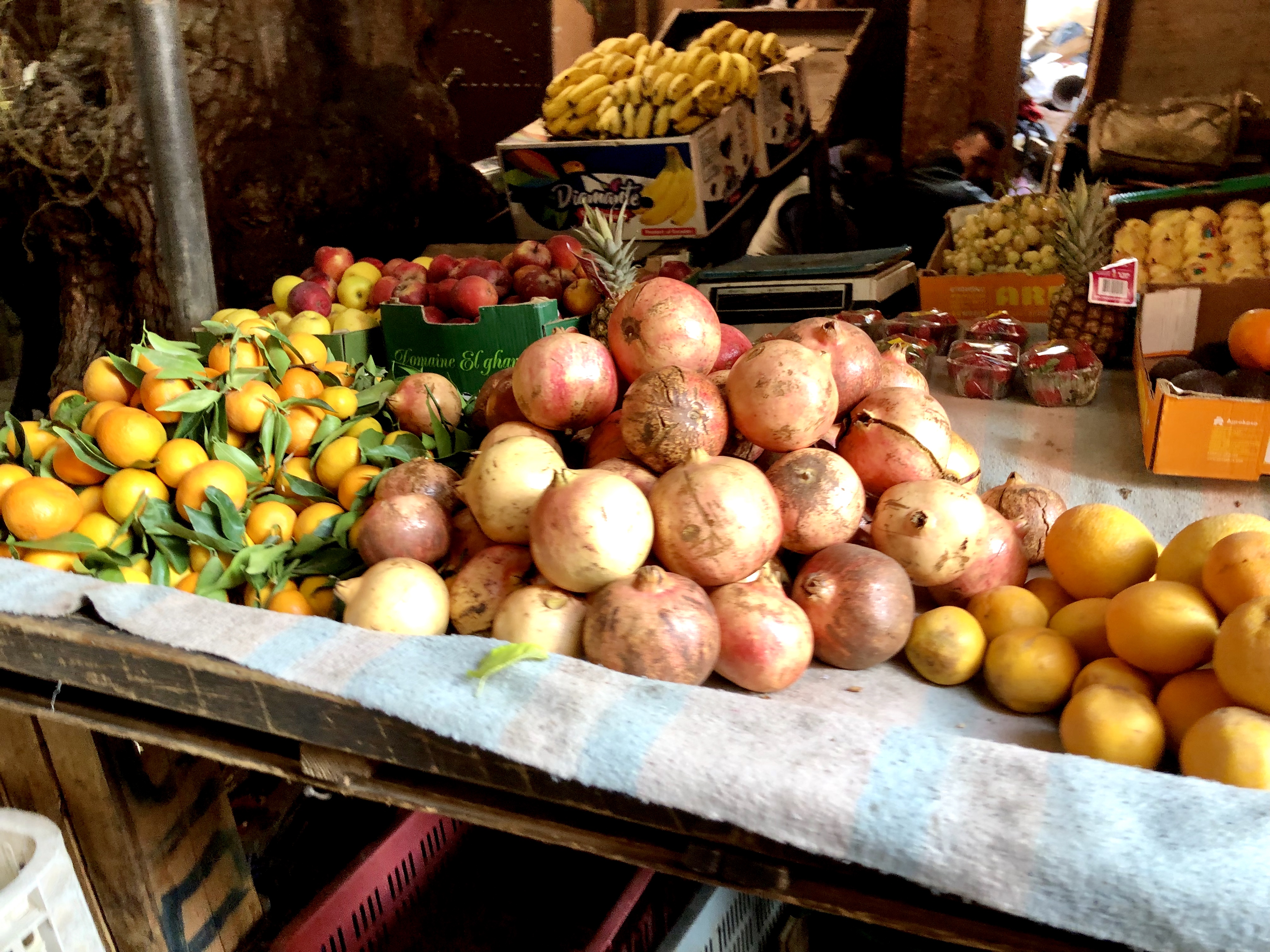 Parlando in termini attuali sicuramente si mangia a km zero. L’astuto popolo africano ha davvero capito in che modo aprovechar (termine spagnolo che adoro) dei frutti di Madre Terra. E che frutti! Gli agrumi la fanno da padrona. In ogni angolo che si rispetti c’è almeno un pittoresco chiosco che offre spremute fresche di arance, pompelmi e limoni. In pole position anche il melograno seguito a ruota da avocado e datteri, mescolati in avanguardistici intrugli energizzanti.