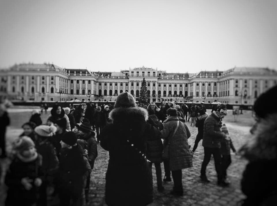 Scavalcando il mio – a quanto pare -infondato scetticismo per i viaggi organizzati, mi aggrego assieme alle mie amichelle ad una lauta comitiva di giovanotti rampanti per visitare la capitale austriaca in prossimità delle feste. Capisco che il weekend sarebbe stato trionfale quando al primo pit stop della nostra carrozza (l’autogrill di Ledra) il capo gita sfodera un bottiglione di vino rosso (quello buono) e panini con la mortadella, dando il via al primo rebechin marchiato Fogolar Furlan. L’aperitivo si rivela un successone, tanto che nemmeno una gomma bucata a poco dalla ripartenza ammoscia gli animi dei temerari viaggiatori. Così, dopo un intervento da formula uno del nostro autista/gommista, riprendiamo festosi e pimpanti la strada per giungere finalmente a Vienna.