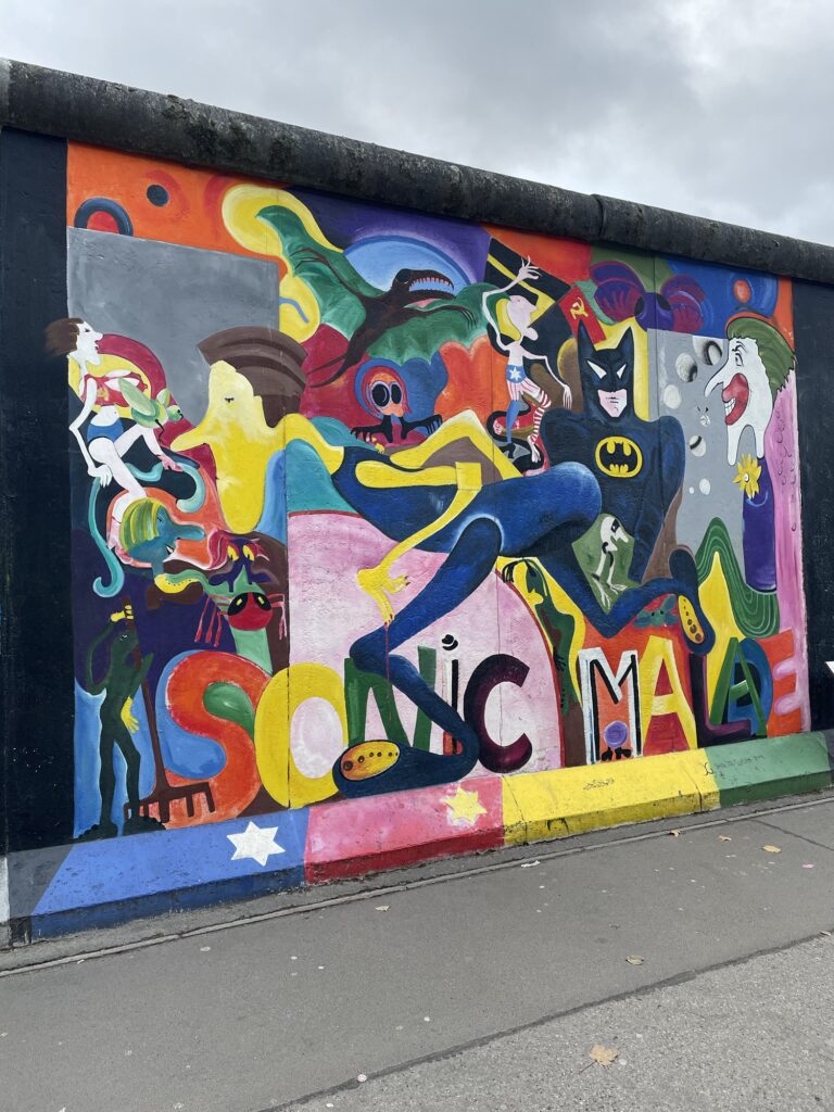 Berlino: poco tempo. Un giorno e mezzo è un’inezia per visitare una città così complessa in modo soddisfacente. La gita si è sviluppata come una mezza-maratona fra i siti d’interesse più acclamati della capitale tedesca. Perciò, a ritmo di marcia abbiamo raggiunto il Reichstag, la Porta Di Brandeburgo, Alexanderplatz e il Muro di Berlino. Fra queste mete rinomate ha toccato maggiormente il mio animo sensibil/artistico la versione riqualificata dell’antico divisorio in cemento armato che fino al 1989 separava Berlino Est da Berlino Ovest. Alcune parti della vecchia cortina di ferro sono state conservate e sfruttate per dare vita all’East Side Gallery, una vera e propria galleria a cielo aperto che si estende per più di un chilometro e sfoggia una sequenza di graffiti mozzafiato, espressione del tumulto emozionale e culturale derivante da un avvenimento storico dalla portata epocale come la caduta del muro.