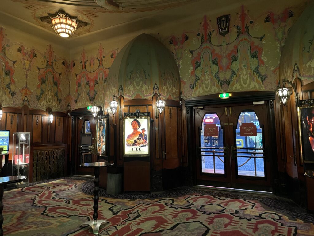 Ho avuto l’immensa fortuna di poter guardare questo masterpiece in lingua originale. Fondamentale. 10 punti a Grifondoro! Inoltre, carico da novanta, l’ho visto comodamente spaparanzata su una delle indimenticabili poltroncine in velluto color senape dello sfavillante Tuschinski Theatre, di cui vi applico a breve una diapositiva che, per inciso, non rende nemmeno vagamente giustizia alla maestosità dell’ambiente. Manco prendendo una laurea breve in Design d’Interni riuscirei a combinare materiali così eccentrici e diversi fra loro facendoli risultare armonici. Ah, il bagno è grande tre volte casa mia. Spettacolo!